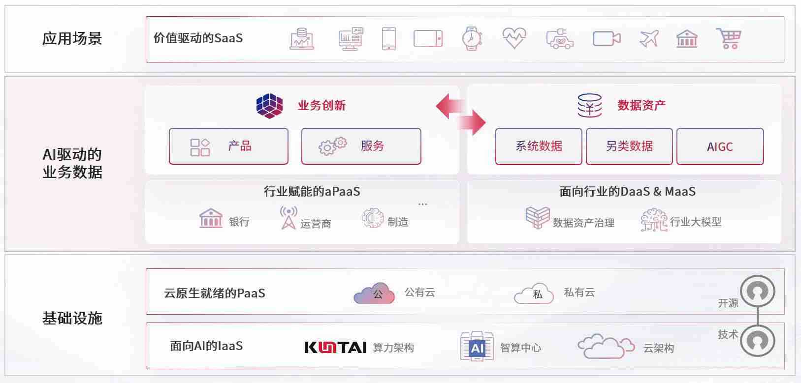 数字时代,,,围绕企业数字化转型的关键要素,,,,234钱包数码开创性的提出数云融合战略和技术体系框架,,,着力在云原生、、、、数字原生、、、AI原生和信创产业上架构产品和服务能力,,,,为处在不同数字化转型阶段的快消零售、、汽车、、、、金融、、医疗、、政企、、、教育、、运营商等行业客户提供泛在的敏捷IT能力和融合的数据驱动能力,,构建跨界融合创新的数字业务场景和新业务模式,,,,助力企业级客户建立面向未来的核心能力和竞争优势,,,,全面推动社会的数字化、、、、智能化转型升级。。